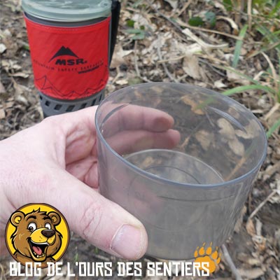 Je ferais ultérieurement un comparatif précis entre un réchaud Jetboil équivalent et le Windburner MSR, mais je pense que ce dernier est bien plus avantageux en terme de rendement. A suivre...